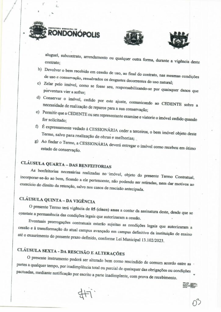 Existe um acordo vigente que estabelece que a Prefeitura é responsável pela parte estrutural do imóvel, cabendo a ela manter e realizar a manutenção do prédio. No entanto, essa obrigação não vem sendo cumprida de forma adequada, o que agrava ainda mais os problemas enfrentados pela instituição.